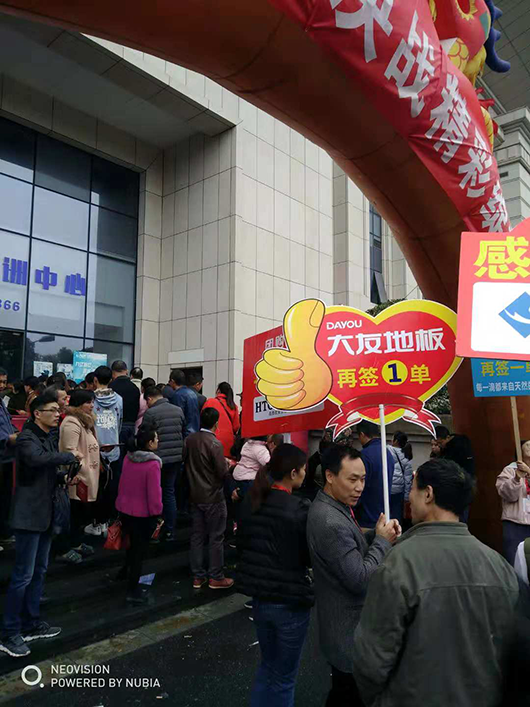 年年双十一剁手争分夺秒,最后终于明白还是商家套路最深!大友地板作为行业领军品牌之一,誓要为大家办一次“货真价低”的购物盛宴。2018年11月11日,一场全年最低价、一线建材品牌集合的鼎盛联盟“决战双十一”在江西九江白鹿奥体中心盛大举办。九江人民积极参与,活动展厅内人头攒动,现场火热程度引爆全城!