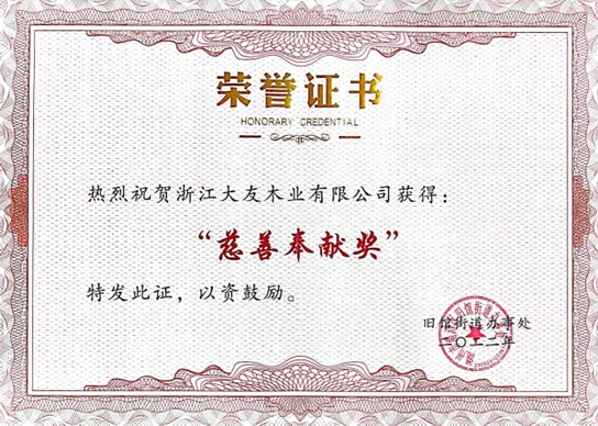 热心奉献慈善公益 近日,2022年南浔区“慈善助力共同富裕”募捐活动暨2022年“慈善一日捐”活动项目启动仪式正式举行。大友地板荣获“慈善奉献奖”荣誉称号,以慈善公益之手助力共同富裕。 大会在区领导带领下进行了“慈善一日捐”现场捐款,大友地板等其他企业纷纷慷慨解囊,以实际行动彰显慈善的时代价值和使命,为南浔打造更有温度、更有大爱的慈善之区贡献…