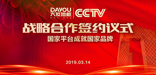 2019年3月14日,大友地板强势入驻央视电视台,签约活动仪式在湖州圆满举行。大友木业总经理王晓晓、天晴传媒总经理乔彪和大友木业营销总监王远坤等多位领导嘉宾出席本次签约仪式。本次活动标志着大友地板牵手中央电视台正式成为广告合作伙伴,未来在央视的投放下,大友品牌势必会在行业掀起一阵波澜,携手铸就一段佳话! 中国中央电视台作为我国成立时间最长,广告运营…