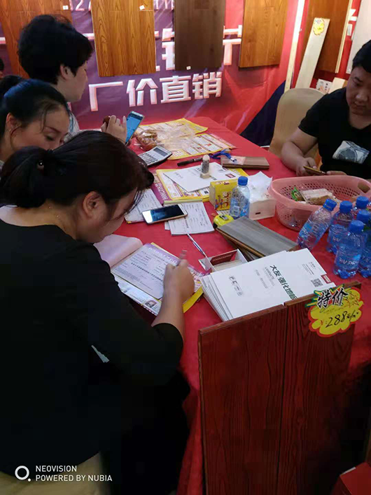 在砍价会没有正式开始之前,已经有不少顾客驻足在大友地板的样品前,拿出十足的架势开始砍价,使现场气氛异常活跃,更有一些顾客早早付了定金。依靠优秀的品质,优惠的价格,良好的口碑,大友地板一举拿下当日品牌热度的头筹,订单喜人,成为了当天最大的焦点之一。这次的鼎级建材团砍价会同时也是大友地板在义乌的首次大型活动,给予大友地板活力新鲜的营销血液。尽管砍价会对于瑞澄地板厂家及商家来说是零利润,但是义乌作为新的营销亮点,砍价会的成功举办带来强大品牌力量对于大友地板来说有着非凡的意义。