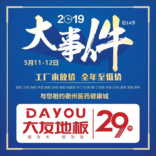 时间:4月12日至5月1日地点:遵义马家湾互豪世贸城·大友地板专卖店