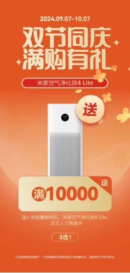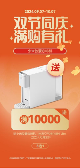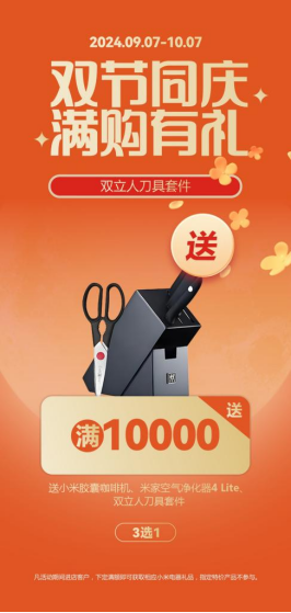满10000,送小米胶囊咖啡机、米家空气净化器4 Lite、双立人刀具套件(任选其一)