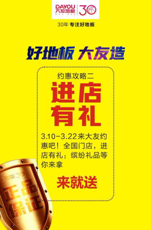 我们始终捍卫地板品质,这个春天,与大友来一场品质约“惠”吧!
