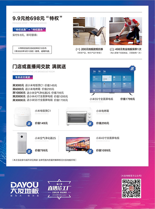 全场满就送,直播间下定金,专卖店交尾款,只要符合条件,礼品全部拿回家: