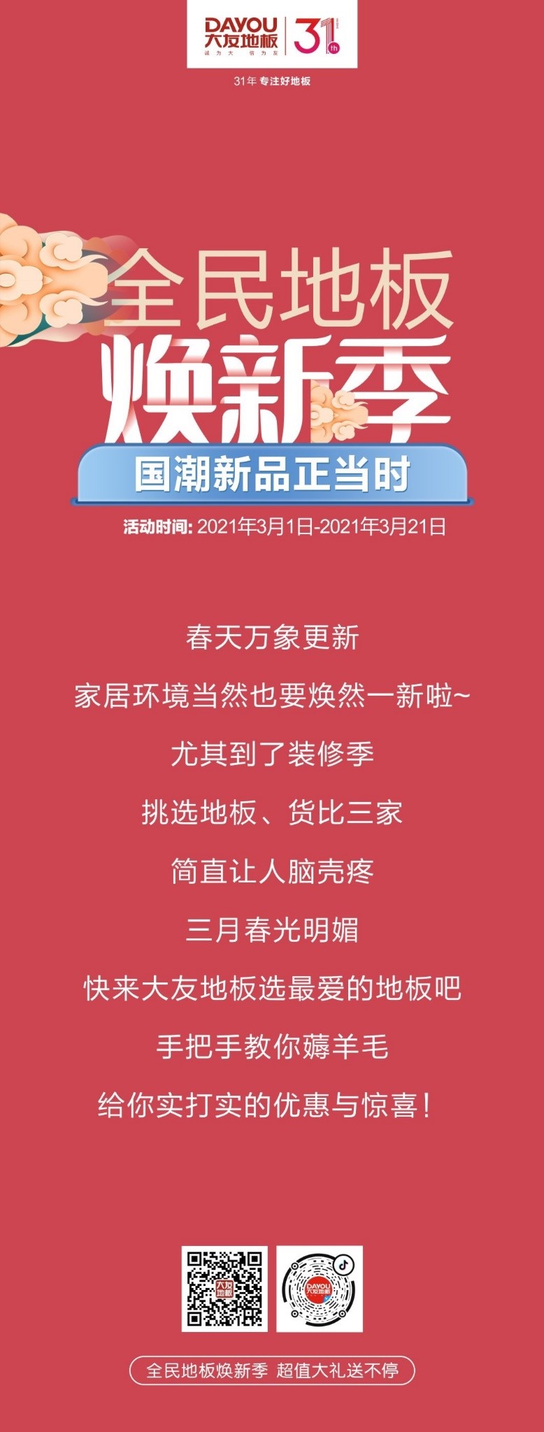 点击领取你的春日福利大友·全民地板焕新季拒绝吃土,享受躺赢时间:2021.03.01-2021.03.21